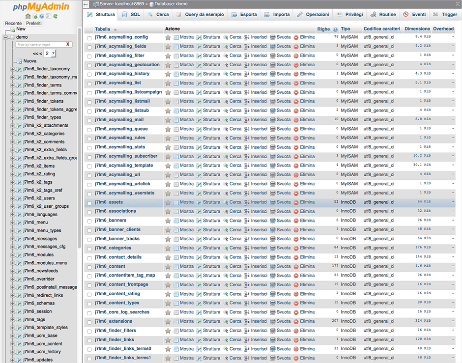 demo : è il nome del mio database, lo dovete sostituire con il nome del vostro db