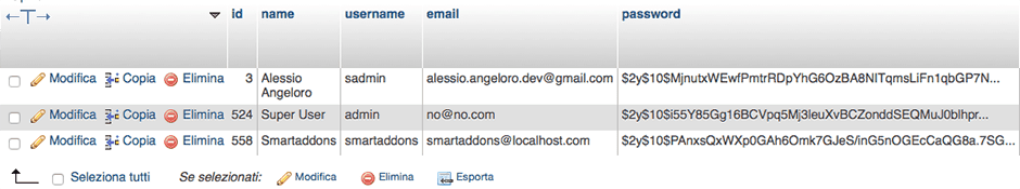 Bene, ora abbiamo creato la nuova utenza ma se provate ad accedere al back end vi darà un errore dicendo che non avete i diritti per accedere, questo perchè l’utente al momento non fa parte di alcun gruppo, il rimedio è molto semplice, va assegnato al gruppo Super User e lo si può fare con una piccola query.