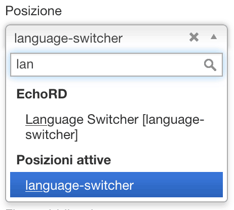Una volta salvati entrambe i files avremo a disposizione la nuova posizione “language-switcher”