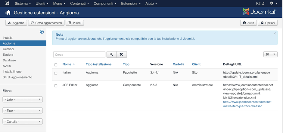 Joomla 3 come gestisce le richieste di aggiornamento delle estensioni ?