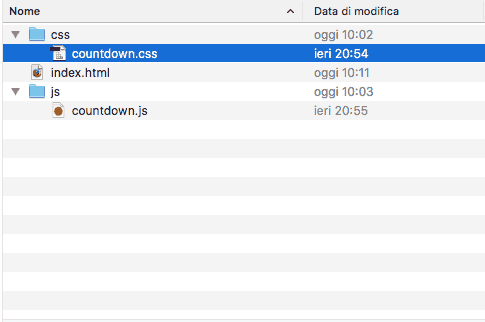 Ed il codice JS che regola il conto alla rovescia