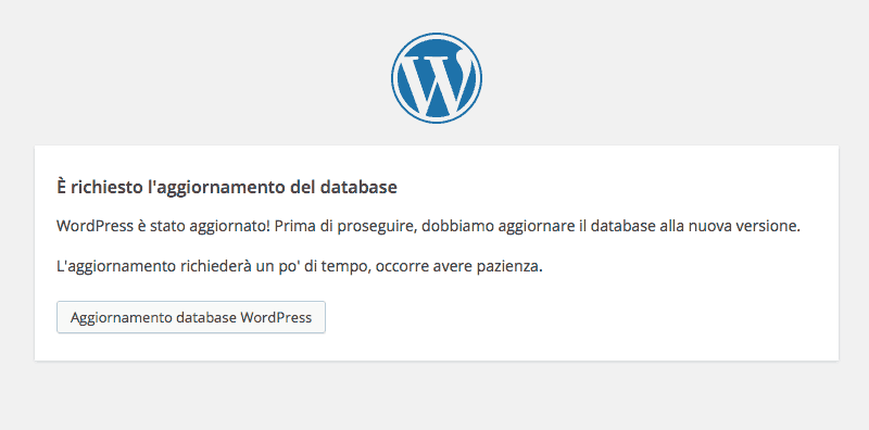 Bene la parte più difficile è fatta, ora accedete alla dashboard di WordPress vi varrà richiesto di aggiornare il database, rispondete si,