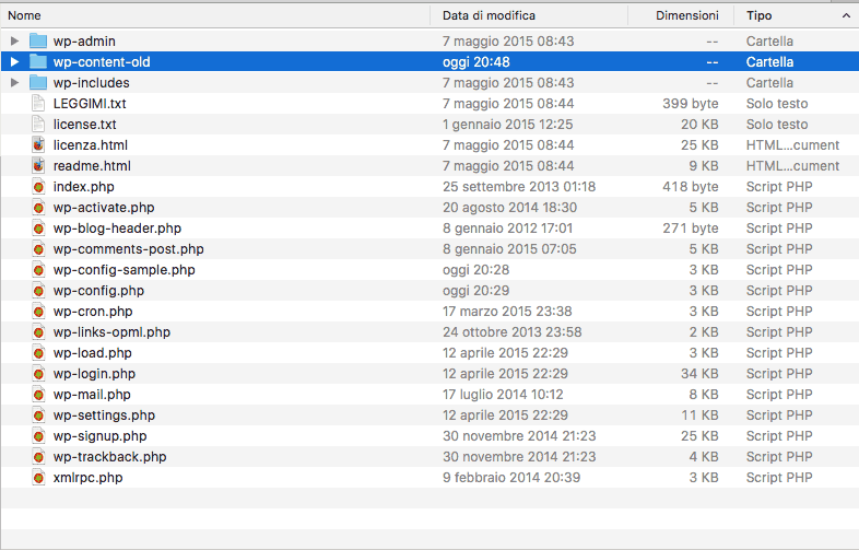 - una volta che siete sicuri di che tutto funzioni di nuovo correttamente, la cartella wp-content-old può essere tranquillamente eliminata