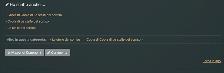 Nella terza e quarta immagine ho inserito due pulsanti che richiamano una funzione in jQuery, non fa altro che mostrare e nascondere un div, in questo caso l’ho utilizzata per mostrare o nascondere i commenti ed il relativo form di inserimento.