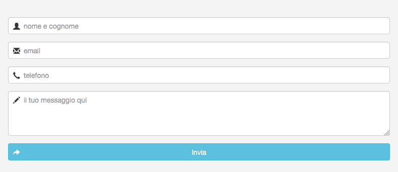 Per questo form e l’inserimento delle icone ( altrimenti dette glyphicons) nei campi input text e textarea ho utilizzato Bootstrap.
