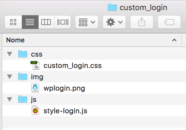Ora sempre nella root del template create una cartella custom_login, al suo interno un’altra img e poi css, ed infine la cartella js per avere una struttura del genere