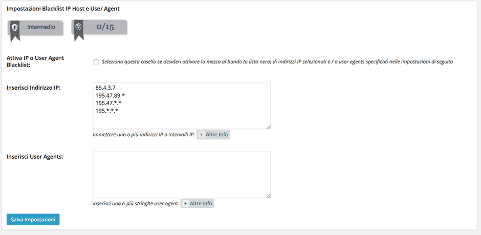 Il bello della funzione “Gestione Blacklist” è che è possibile specificare manualmente gli indirizzi ip da bloccare, in questo modo viene negato completamente l’accesso all’area amministrativa di WordPress.