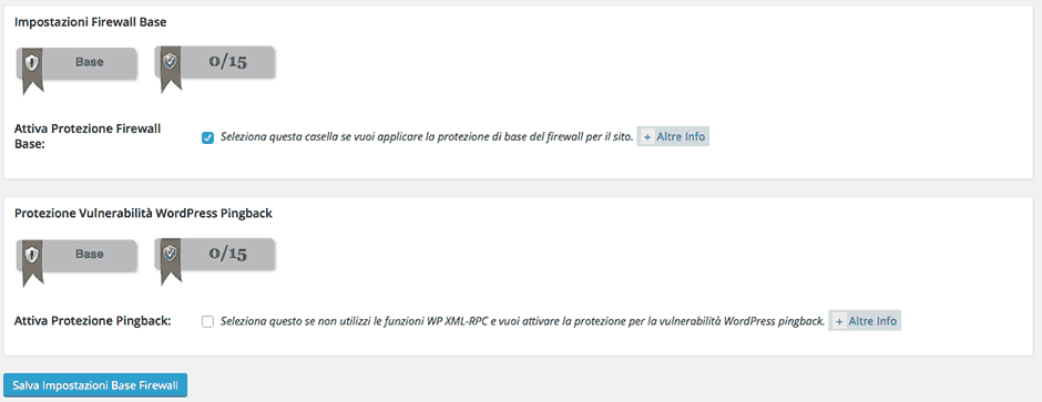 Ci sono diversi plugin anche gratuiti che fungono un pò da firewall e un pò da deterrente agli hacker; ho testato il plugin gratuito “Sicurezza WP” (All In One WP Security & Firewall) che ha una serie di funzionalità molti utili, atte a prevenire i più comuni attacchi di piramenti informatici.