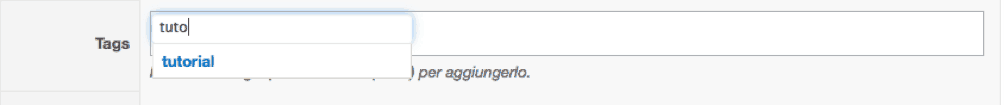 se il tag è già stato utilizzato in precedenza, sarà sufficiente scrivere le prime lettere, la funzione di completamento automatico mostrerà la parola intera, basterà selezionarla con il mouse per inserirla