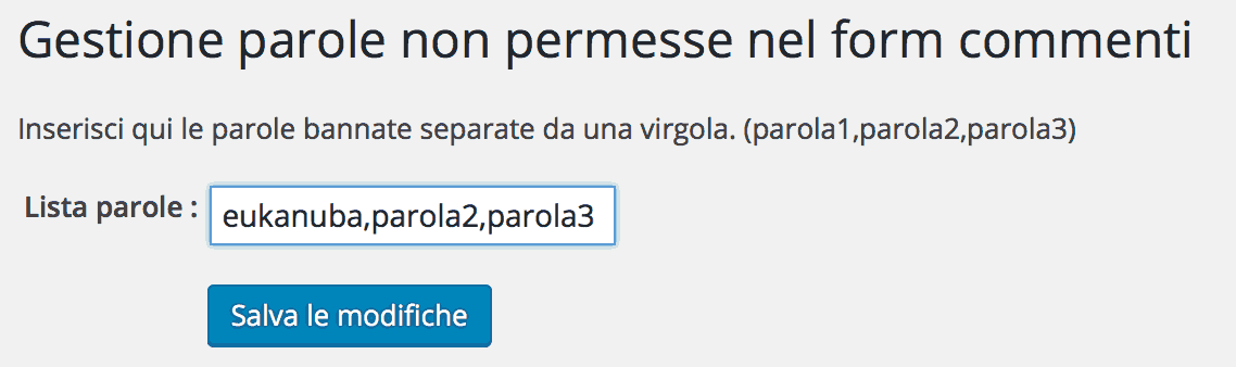 Quindi ovviamente oltre ad abilitare un buon filtro antispam, come può essere per esempio il servizio Akismet, ho sviluppato un plugin del tutto gratuito che permette di creare una blacklist con le parole non permesse e da bannare in automatico prima che l’utente possa inviare il proprio commento, bello no ? 😛