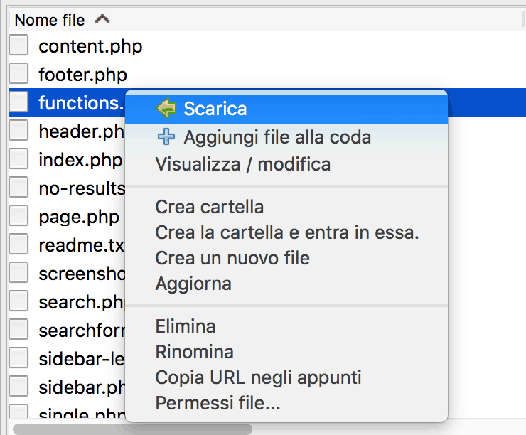 Se invece avete già il file function.php, aggiungente alla fine del file le seguenti righe di codice