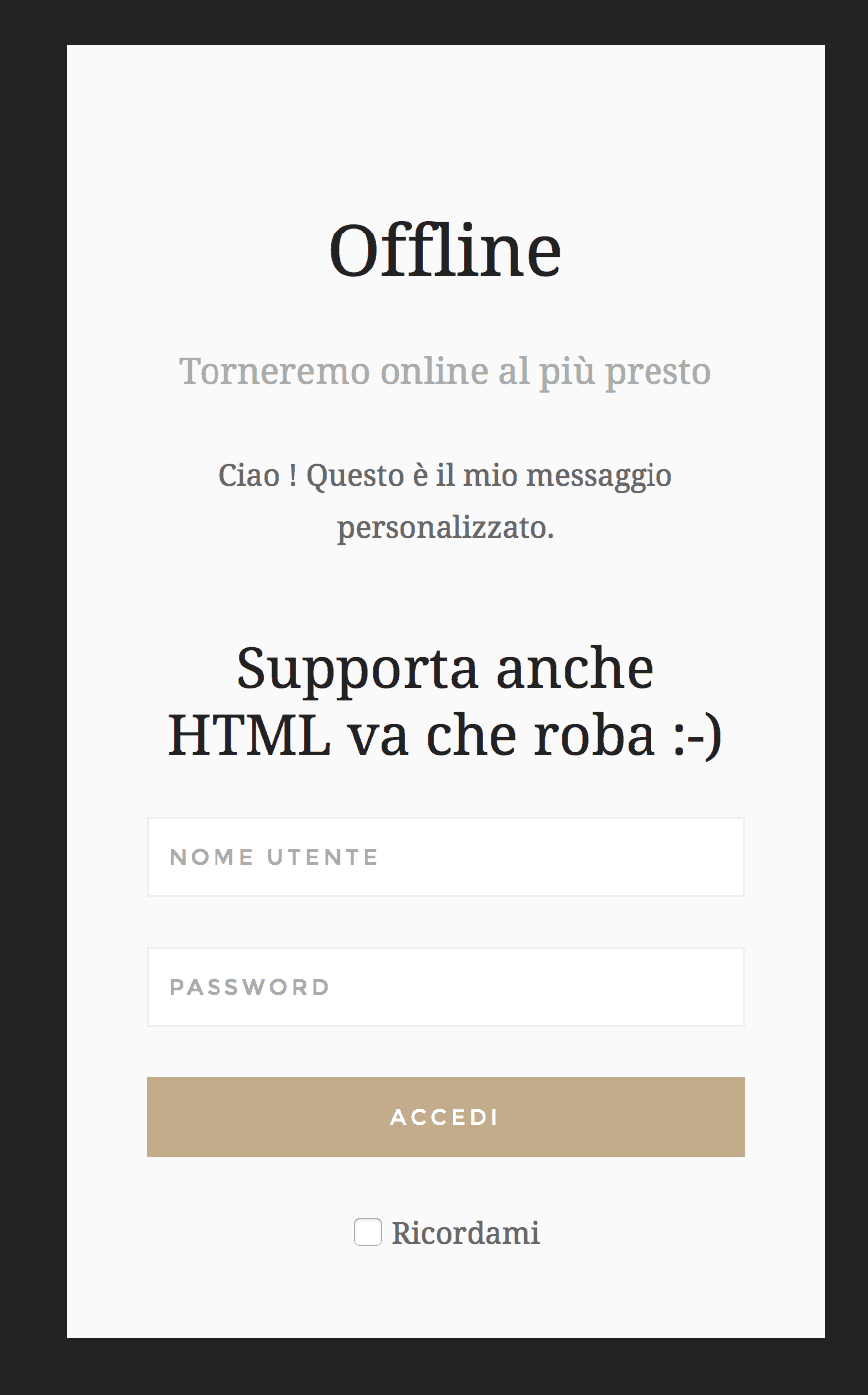 in questo parametro è possibile scrivere un messaggio personalizzato che verrà mostrato quando il front end del sito è offline