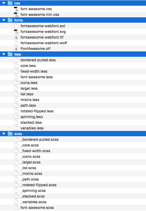 In questo modo abbiamo la chiamata verso il file css, ma non abbiamo ancora incorporato il font web, quindi copiamo l’intera cartella “fonts” dall’archivio zip che abbiamo precedentemente scaricato ed incolliamola al livello della directory superiore della cartella css, avremo quindi una struttura :