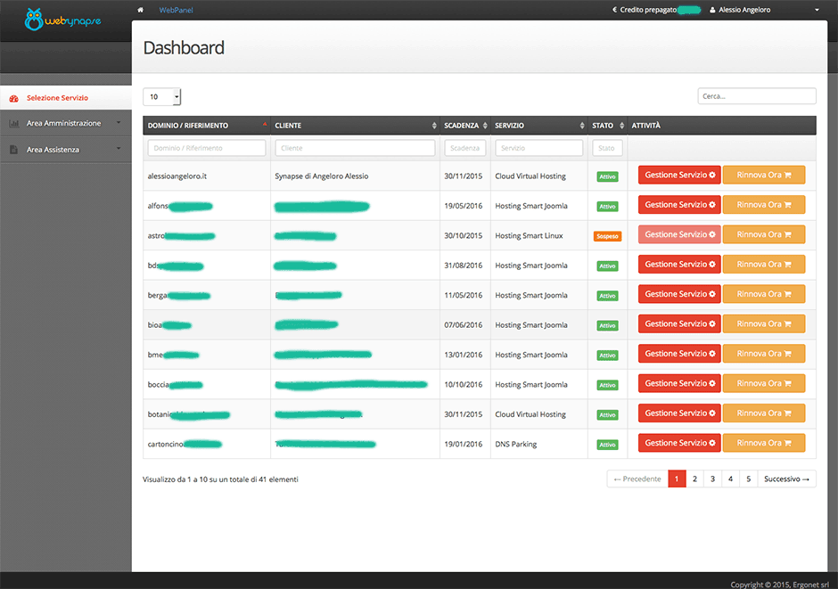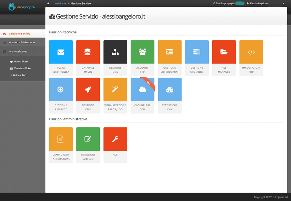 Lascio qualche immagine del pannello di controllo di Ergonet, non entro nello specifico perchè dovrei oscurare tutti i dati sensibili e rimarrebbe poco, ma è giusto per darvi un’idea di com’è.