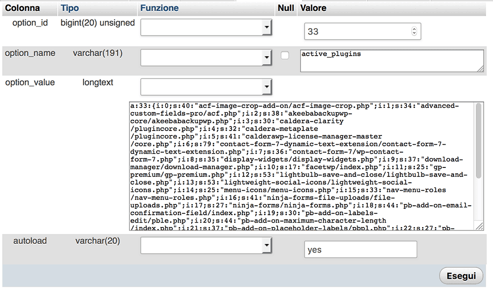 Come disabilitare plugin di WordPress via database MySQL