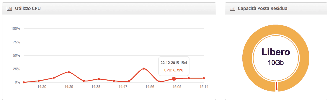 Pannello di controllo CVH Cloud ServerStattistiche dettagliate CVHStatistiche di utilizzo RAM Statistiche di utilizzo posta elettronica e CPU