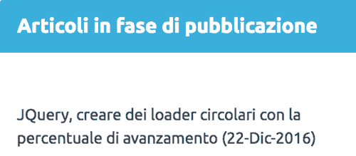 Poniamo il caso di voler incuriosire i nostri lettori mettendo un pò di sospance, creiamo un piccolo widget dove verranno mostrati gli articoli in fase di pubblicazione.